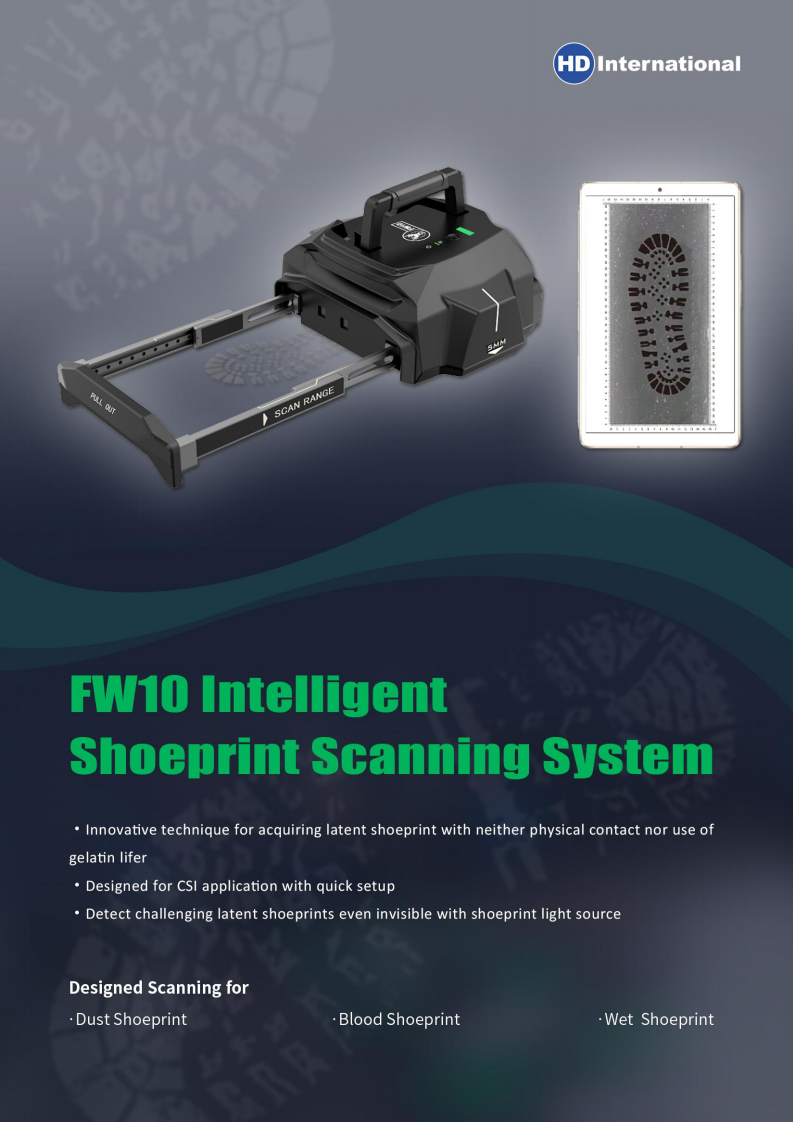 The FW10 Intelligent Shoeprint Scanning System combines high-quality optics with advanced algorithms to quickly and accurately process latent shoeprint images from crime scenes. It works fast without damaging evidence, helping law enforcement identify prints more efficiently and build stronger cases.